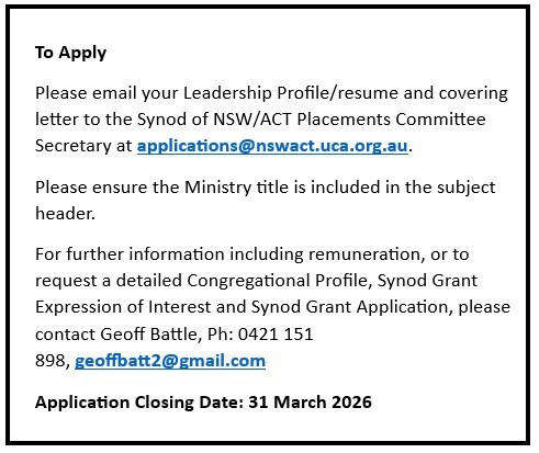 - Reporting to: Manning Uniting Church Council
